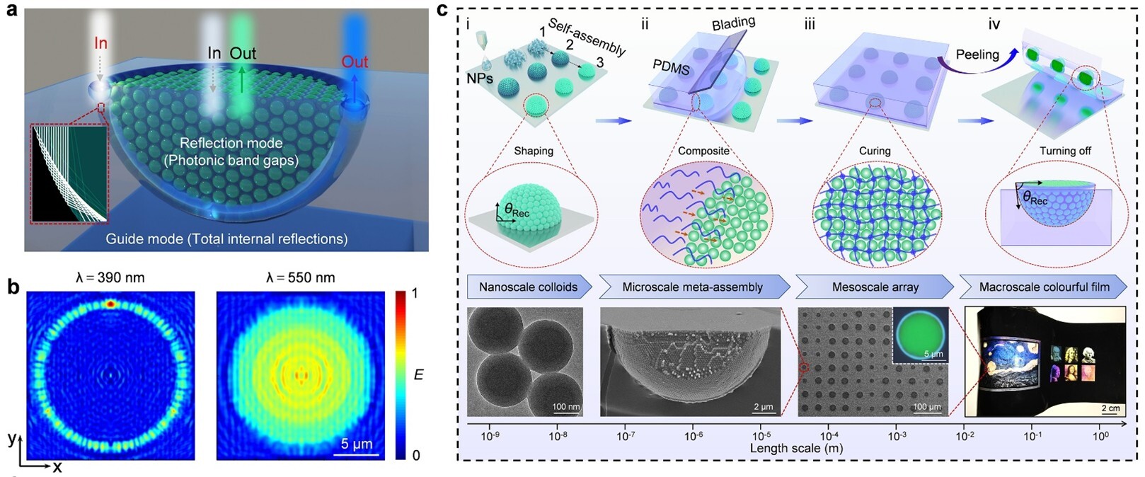 The team first established the multiscale optical framework, achieving the effective synergy between material property and structure design. They then combined high-throughput inkjet printing, continuous roll-to-roll manufacturing and precise interfacial self-assembly for scalable and precise fabrication of multiscale optical metamaterials. The fabricated metamaterials exhibit efficient light-matter interaction owing to the synergistic enhancement of multiple physical effects including scattering, photonic bandgaps and total internal reflections in a single structure. The systematic characterizations and theoretical analyses elucidated the fundamental regulation laws and core structure-property relationships in cross-scale structural systems, providing deep insights into the underlying physics of multiscale optical metamaterials.